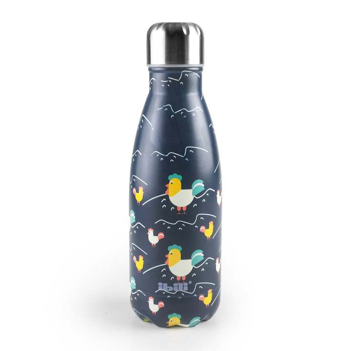 Botella térmica infantil de 0.35L IBILI ZOO fabricada en acero inoxidable de doble pared. Por su tamaño, ligereza y resistencia, es perfecta para que la lleven niños y niñas siempre encima. Además, no altera los sabores.