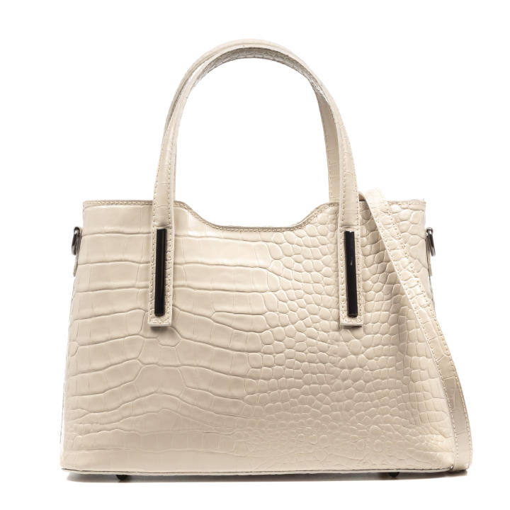 FIRENZE ARTEGIANI Fiesole bolso tote Mujer. Piel auténtica Gamuza Grabado Serpiente y lacado. 32x13x22cm Bolso de piel acabado Camoscio grabado motivo serpiente y lacado. Compartimento principal con cierre por cremallera. Interior forrado en tela con dos compartimentos separados por cremallera, bolsillo auxiliar lateral con el mismo cierre y dos compartimentos abiertos. Dispone de dos asas flexibles con adornos cromados y correa regulable extraíble. Made in ITALY. Vera pelle italiana. Es recomendable hidratarlo con crema una o dos veces al año para que el cuero no se estropee. (Use un producto indicado para ello aunque algunos recomiendan hacerlo usando la clásica crema Nivea.) Introduzca los cosméticos en un neceser para evitar que se abran por accidente y dañen el interior. Cuidado con el peso de los objetos introducidos en el bolso, el exceso de éste puede dañar el forro interior e incluso las asas al llevarlo de la mano. No tocar el bolso con las manos sucias o con exceso de cualquier tipo de producto en ellas. Asegúrese de llevarlas siempre limpias para evitar mancharlo. (Eludir las recomendaciones anula la garantía en caso de mostrar deterioro por los casos antes citados). Para la limpieza cotidiana de su bolso prescinda de cualquier producto. Use un paño de algodón blanco y seco y páselo por la superficie con cuidado.