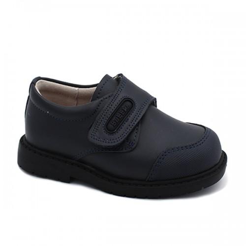 Disponemos de un nuevo modelo de zapatos para el cole de niño. Es un modelo básico fabricado en piel suave tanto por fuera como por dentro y está disponible en tres colores. Su cierre es de velcro ancho ajustable para un mejor agarre. Su puntera está reforzada para proteger el pie de cualquier golpe. La suela es gruesa de goma en color negro en los tres colores.