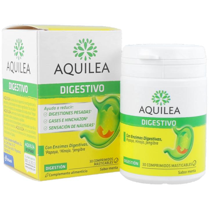Aquilea Digestivo aporta un bienestar digestivo completo ya que contiene Hinojo, planta que ayuda a reducir la sensación de hinchazón y gases, Papaya, que contribuye al bienestar digestivo y Jengibre, que ayuda a reducir la sensación de náuseas asociada a la mala digestión.