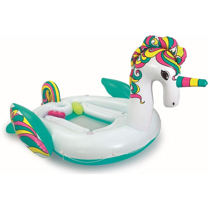 - No pierdas la oportunidad de vivir momentos inolvidables en el agua con esta Isla Gigante Unicornio Bestway. ¡Atrévete a disfrutar de la magia y diversión que te ofrece!