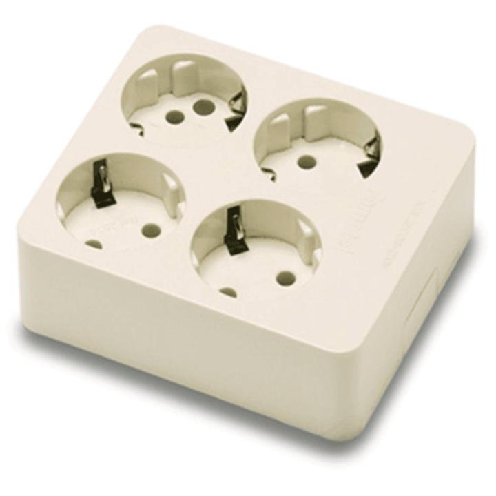 Esta base de 4 tomas TT lateral superficie 250V en color beige es una solución práctica y segura para conectar múltiples dispositivos eléctricos en un solo lugar. Su diseño compacto y discreto la hace ideal para cualquier espacio.