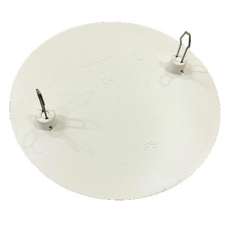 Tapa de caja de registro empotrada redonda de color blanco con 2 pestañas para su cierre a presión.