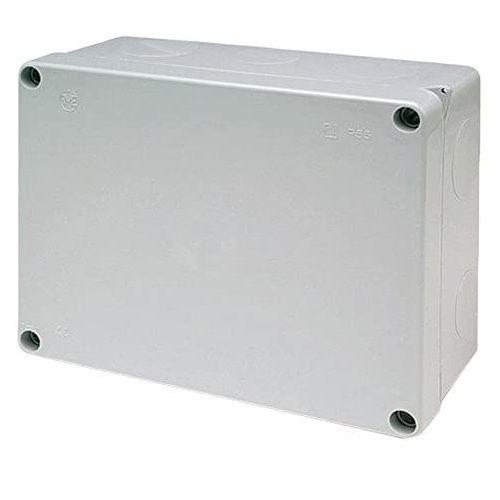 Caja estanca de superficie cuadrada con tornillos de tamaño 80x80x36 mm. Diseñada para realizar conexiones eléctricas, material plástico color gris y tapa con cierre a presión.