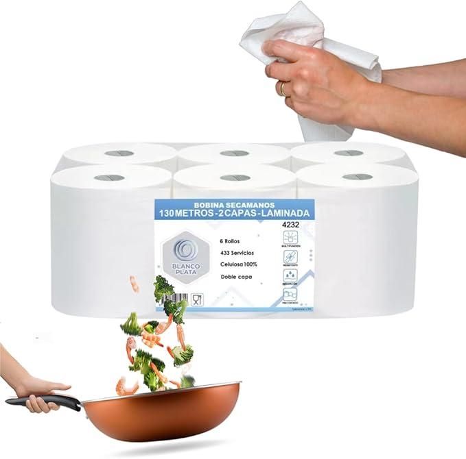 BOBINA PAPEL SECAMANOS 130M 100% CELULOSA DOBLE CAPA