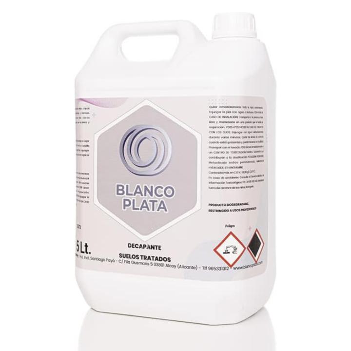 El decapante de suelos tratados Blancoplata en formato de 5l está indicado para eliminar las capas viejas de ceras metálicas en todo tipo de suelos sintéticos y de terrazo. Sus principios remueven las ceras rápidamente. Bajo nivel de espuma que acelera y facilita la acción de enjuagado.