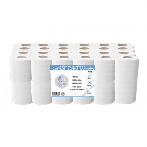 El papel higiénico doméstico 40 de Blancoplata está formado por 48 rollos de papel higiénico de 40m de 2 capas, 100% celulosa en el que cada rollo tiene un total de 311 servicios. Se trata de un papel precortado de calidad, suave al tacto, resistente, con gran poder de absorción y con un bonito grabado. Este papel cuenta con el certificado Cradle to Cradle como producto ecoeficaz, el certificado Ecolabel como producto respetuosos con el medio ambiente y el certificado de Calidad certificada.