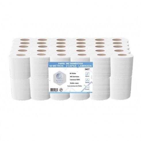 El papel higiénico doméstico 60 de Blancoplata está formado por 60 rollos de papel higiénico de 60m de 2 capas, 100% celulosa en el que cada rollo tiene un total de 483 servicios. Se trata de un papel precortado de calidad, suave al tacto, resistente, con gran poder de absorción y con un bonito grabado. Este papel cuenta con el certificado Cradle to Cradle como producto ecoeficaz, el certificado Ecolabel como producto respetuosos con el medio ambiente y el certificado de Calidad certificada.