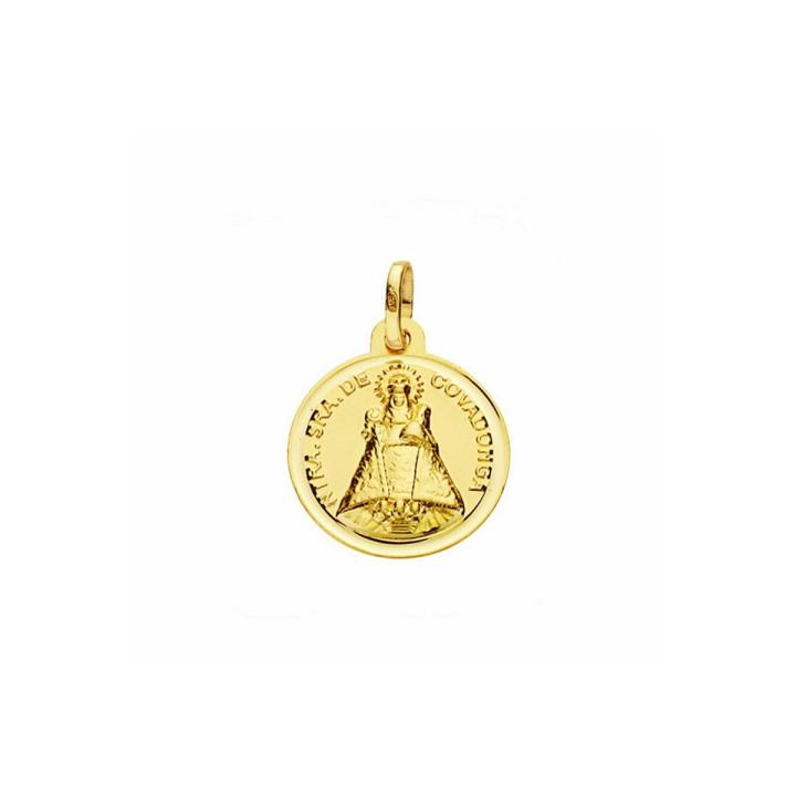 Virgen Covadonga medalla oro 18k unisex 16 mm. bisel liso. Unisex. Peso(gr): 1.8. Diámetro(mm): 16