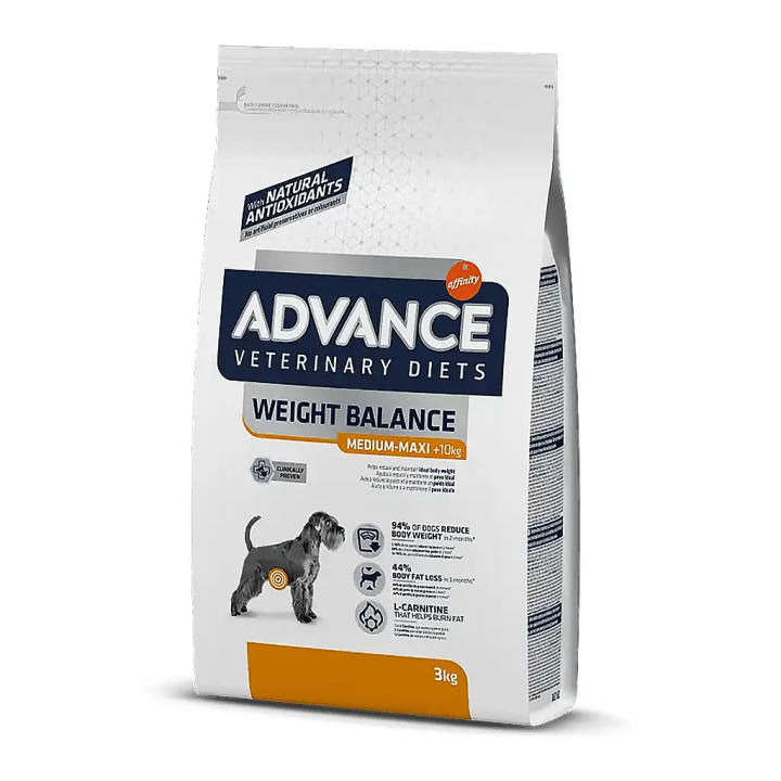 - El pienso Advance Veterinary Diets Weight Balance ideal para perros obesos, para reducir el peso y mantener en el nivel óptimo. También es una comida excelente para aquellas mascotas con problemas hiperlipidemia.