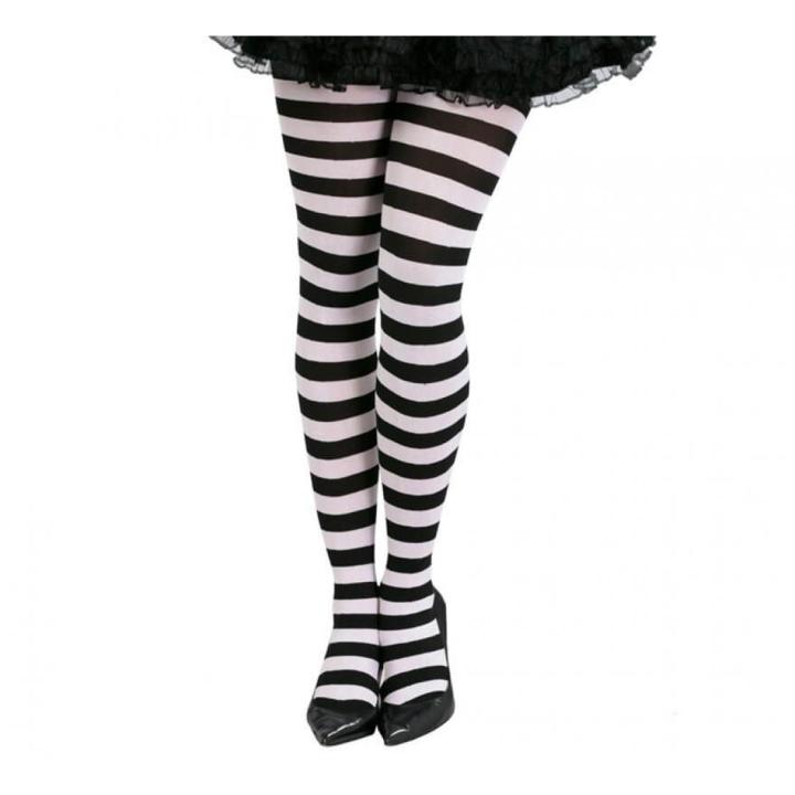 Pantys a rayas blancas y negras. Perfectas para los disfraces de Presidiaria o Prisionera, también quedan perfectas con los disfraces de Esqueleto de Halloween.