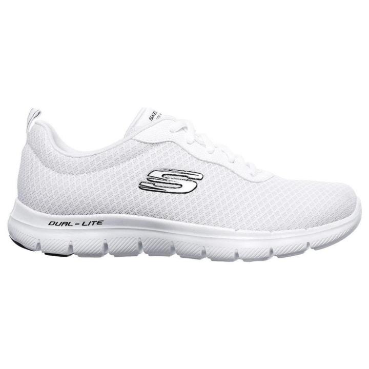 - Ya sea que estés caminando por la ciudad, yendo al gimnasio o simplemente relajándote, la zapatilla Skechers Flex Appeal en color blanco te brinda el equilibrio perfecto entre estilo y comodidad. ¡No esperes más y añádela a tu colección de calzado!