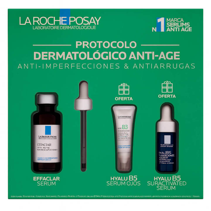 El Sérum Antiedad Effaclar de La Roche Posay contiene una asociación de componentes con las siguientes propiedades: