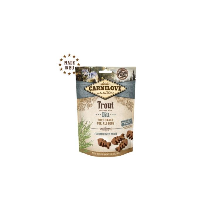 Deliciosos premios semi-húmedos de Trucha con Eneldo con un sabor irresistible a carne exótica. Incluyen Eneldo para mejorar el ánimo.