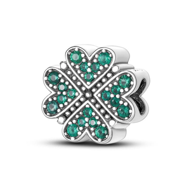 Producto: Abalorios de trébol de la suerte de Plata de Ley 925, colgante de trébol de cuatro hojas con estampado de herradura, compatible con pulsera Pandora Original, regalo de joyería