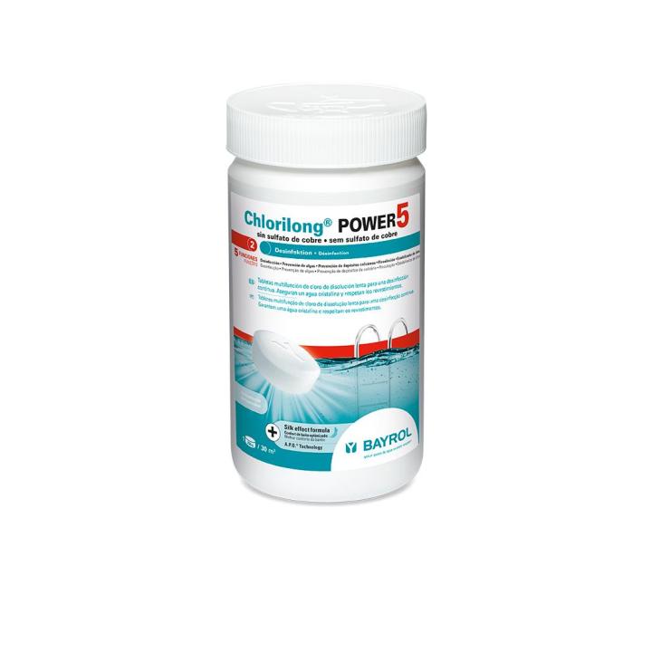 Tabletas multifunción de cloro de disolución lenta y regular. Asegura un agua sana y cristalina y no daña los revestimientos.