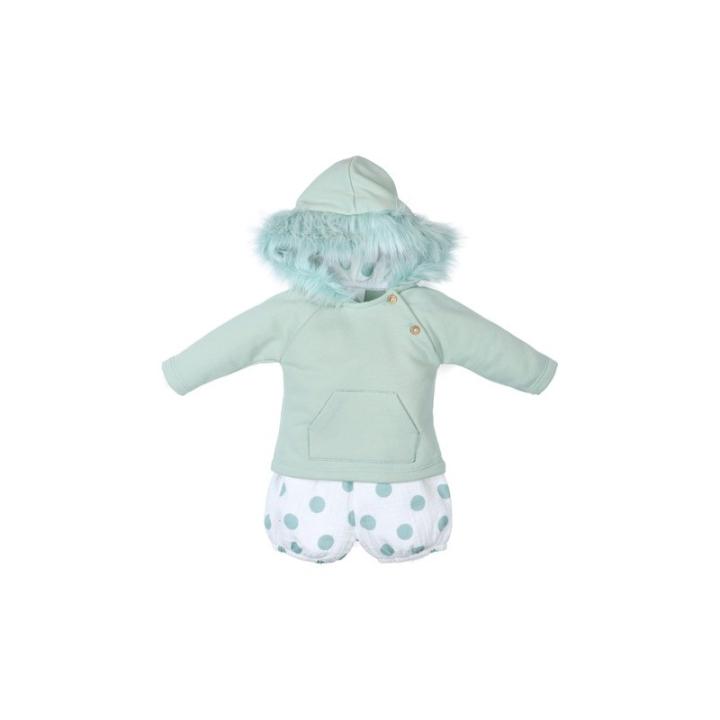 Conjunto de dos piezas compuesto por sudadera bolsillo canguro con capucha detalle pelo y pantalón corto topos_x000D_ Costuras vistas a tono_x000D_ Fabricado en España._x000D_ Moda infantil al mejor precio_x000D_ Marca: Tony Bambino_x000D_