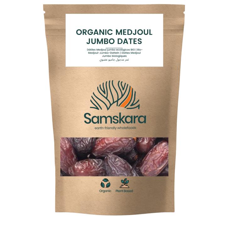 🍀 Los dátiles Medjoul orgánicos Samskara, cultivados en soleados huertos israelíes, ofrecen un sabor parecido al caramelo y una textura suave y masticable. Disfruta de la dulzura natural de estos dátiles grandes y deliciosos . ✨
