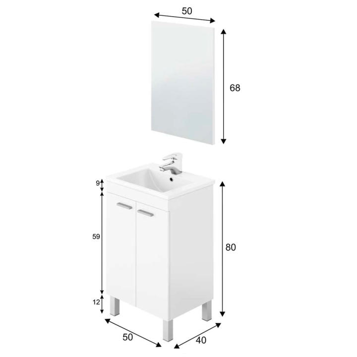 - Mueble: 80 x 50 x 40 cm (Alto x Ancho x Profundidad)