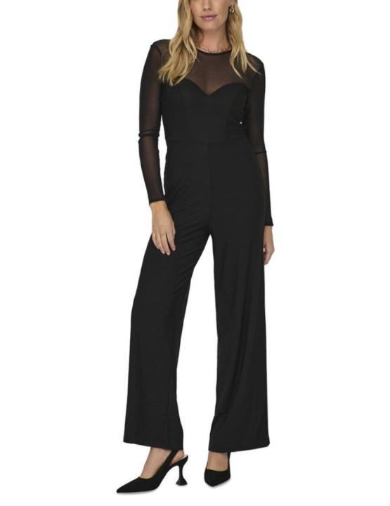 ¡Descubre el mono Only de manga larga y pierna ancha en color negro para mujer! Este elegante mono es perfecto para lucir un look sofisticado y a la moda. Con un escote corazón y un tejido de tul en el pecho y las mangas, este mono destaca por su estilo único y femenino. Además, su tejido elástico garantiza un ajuste cómodo y favorecedor.