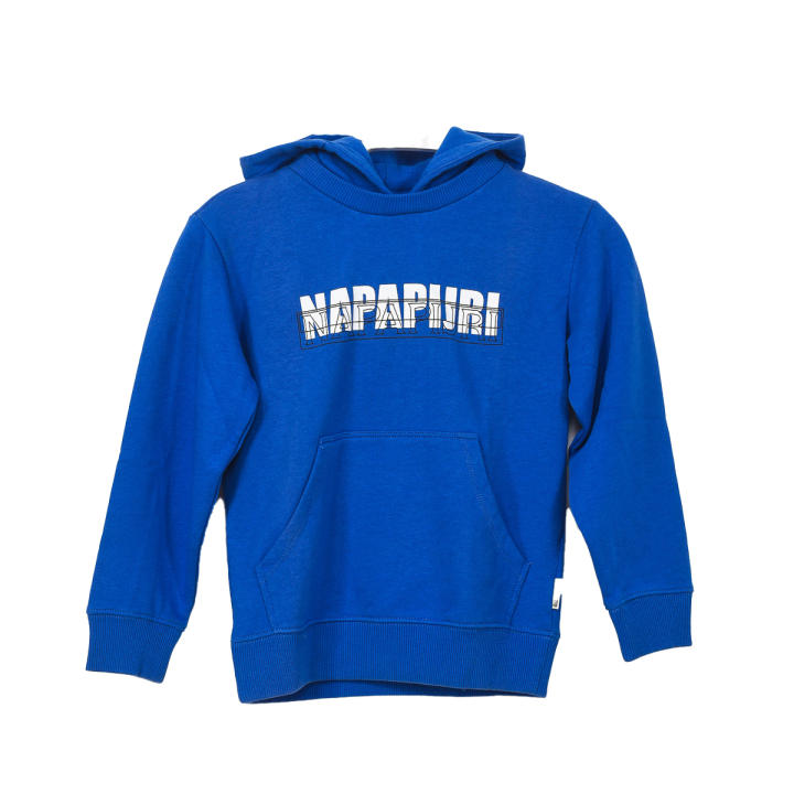 La sudadera de niño con capucha de la marca Napapijri es una prenda cómoda y funcional, diseñada para ofrecer un look casual con detalles distintivos de la marca.