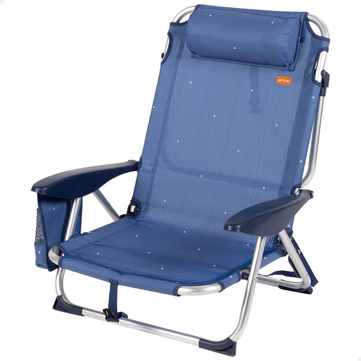 Silla de playa baja y tumbona multiposición Aktive Beach color azul marino con cojín y práctico bolsillo lateral