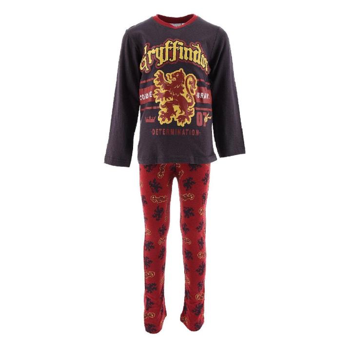 Pijama infantil largo Harry Potter Gryffindor gris burdeos, original 95% algodón y 5% viscosa, cuenta con un espesor de 140GSM (gramos por metro cuadrado de tejido, espesor de camiseta convencional)