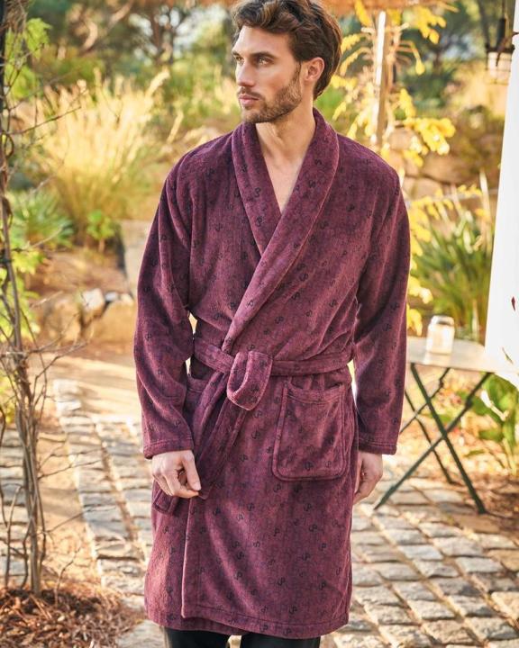 Bata otoño-invierno para hombre de la marca Massana. Bata de hombre de manga larga, cruzada con cinturón y bolsillos de color granate. Muy agradable al tacto, con una gran calidez que te ayudará a abrigarte en la noches frías de invierno.
