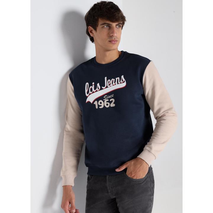 LOIS JEANS - Sudadera cuello caja con manga contrastes- Tallaje en Pulgadas