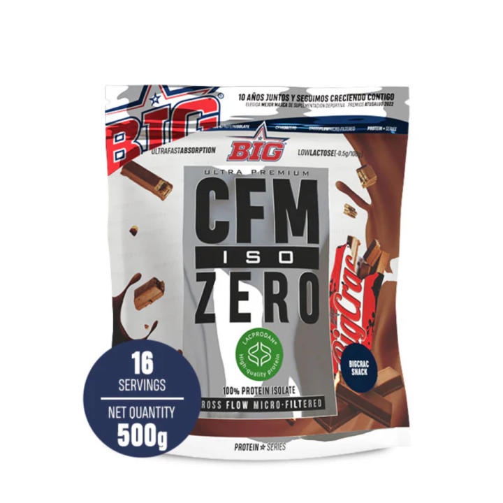 Presentamos CFM Iso Zero - 1 kg de Big, la evolución natural de la emblemática CFM Iso Dry. Elaborada exclusivamente con aislado de proteína de suero al 90%, este producto cuenta con una de las mejores materias primas disponibles en el mercado: Provon® 295 CFM de Glanbia Nutritionals.