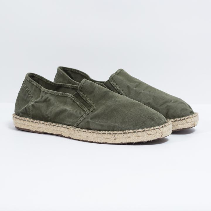 Zapatilla de esparto de hombre modelo Old Capri 330 de la marca española Natural World. Este modelo de alpargata de esparto masculina es el resultado de un innovador diseño de alpargata inspirado en la alpargata clásica, fabricada y diseñada en España con materiales 100% ecológicos y orgánicos, combinando estilo y sostenibilidad. La parte superior es de algodón natural con certificación GOTS, rematada con dos elásticos para que se adapten perfectamente al pie, y la suela es de yute. Fabricado en España.