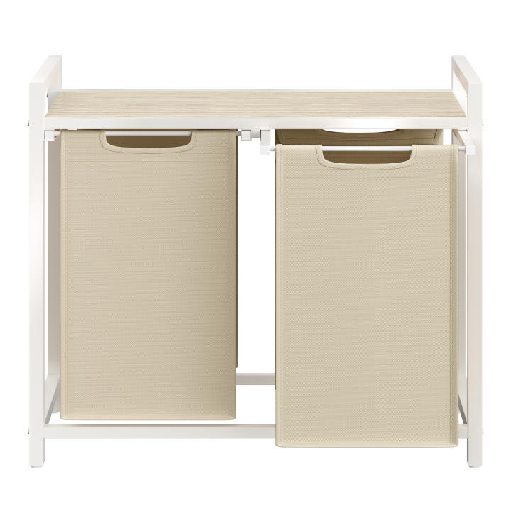 2 compartimentos: Este cesto frece una capacidad total de 92 L (46 L por bolsa); el diseño de 2 compartimentos ayuda a organizar prendas por tipo o a dividir las claras de las oscuras