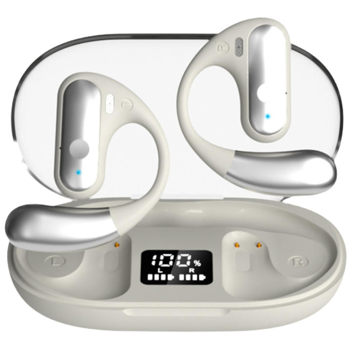 2025 SANLEPUS Auriculares Abiertos, Auriculares Inalámbricos Bluetooth, Auriculares Bluetooth 5.3 con Micrófono HD Pantalla LED Estéreo HiFi, Carga Rápida USB-C, Ajuste Cómodo, Compatible con iPhone Android