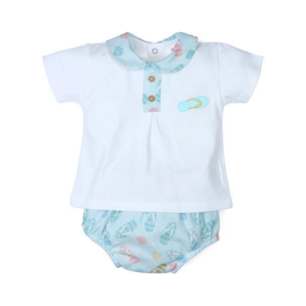 Camiseta manga corta cuello bebé y cubrepañal estampado chanclas