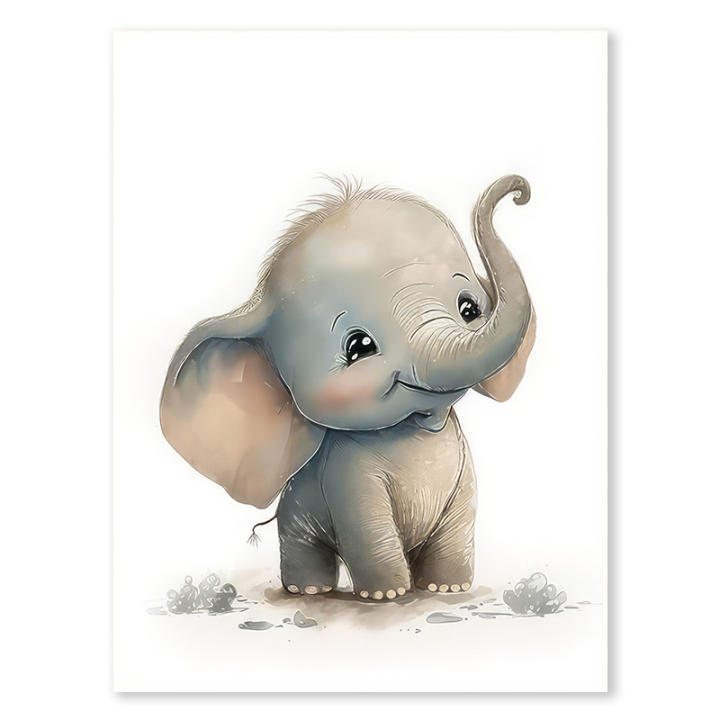 Póster de dibujos animados de animales de la selva, pintura en lienzo de elefante, León, hipopótamo, imágenes artísticas de pared para dormitorio de niños, decoración de habitación de bebé