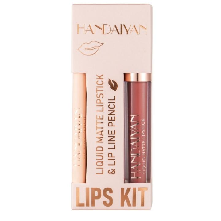 HANDAIYAN Lápiz Delineador de labios mate, taza antiadherente de larga duración, no se decolora, resistente al agua, terciopelo pigmentado, Kit de brillo de labios, Cosméticos de belleza, maquillaje Gif