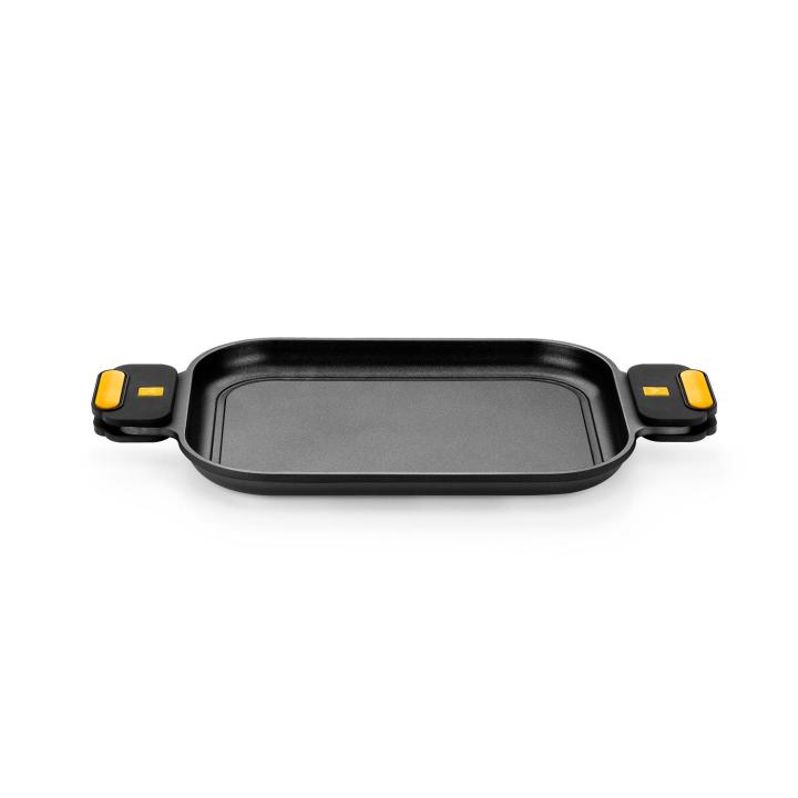 - Parrilla lisa rectangular de aluminio fundido 100% reciclado certificado, de máxima calidad y fortaleza.