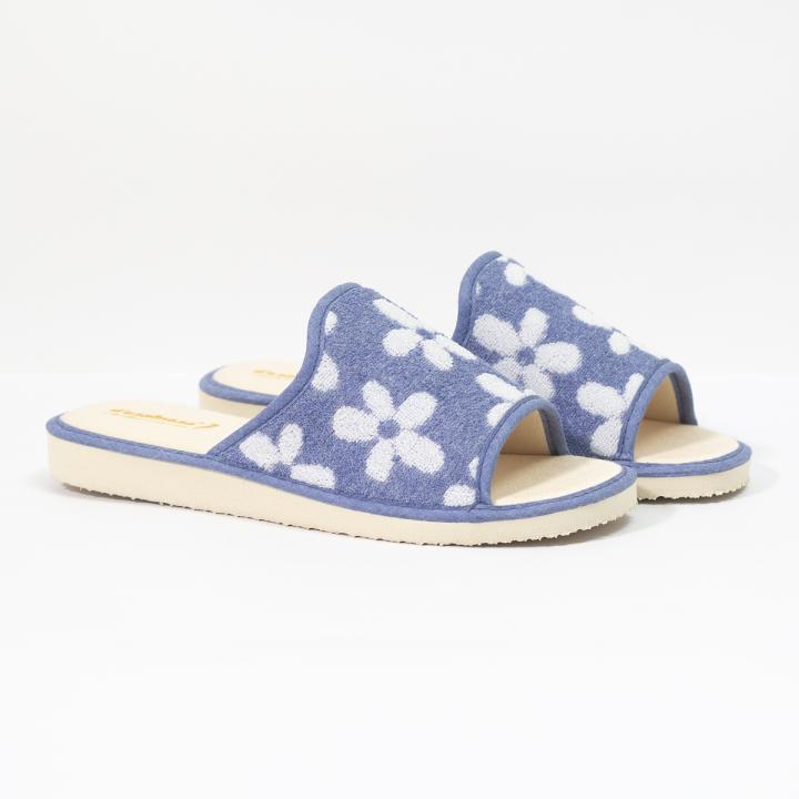 Con las zapatillas Margaritas Abierta Azul1743 de D’Espinosa, tendrás un calzado diseñado para tu confort y estilo en casa. Su diseño destalonado y puntera cerrada te brindará la comodidad y sujeción que necesitas. Están fabricadas en un tejido de rizo tipo toalla en un hermoso color azul estampado con motivos florales en blanco, lo que añade un toque de modernidad a tu vestuario en casa.