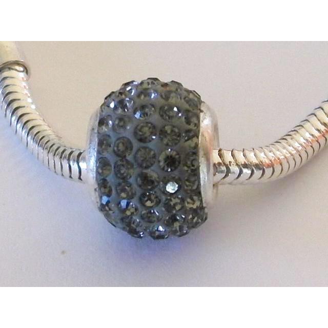 Abalorio de Plata de Ley con cinco líneas de Cristales color Gris.