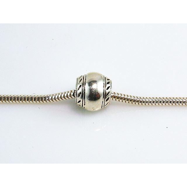 Abalorio de Plata de Ley con cenefa tallada. Compatible no tiene rosca. Es precioso para combinar en Pulseras de Plata o de Cuero.