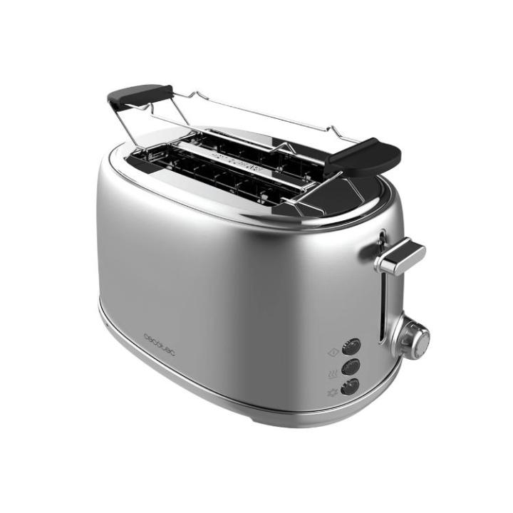 - Tostadora de doble ranura corta con capacidad para dos tostadas.