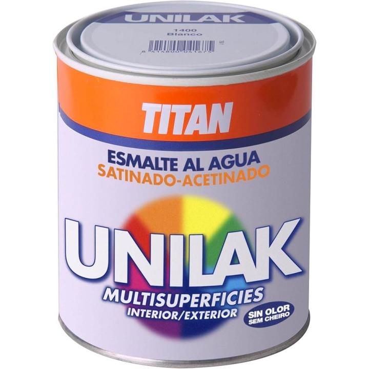 Esmalte laca satinada al agua, multiadherente, de la marca TITAN de muy fácil aplicación sobre toda clase de superficies. Por su gran adherencia y elasticidad, se adapta a todo tipo de materiales creando una película que protege de la humedad y de los agentes externos. Posee un buen poder de cubrición y una buena resistencia a los roces y al lavado.