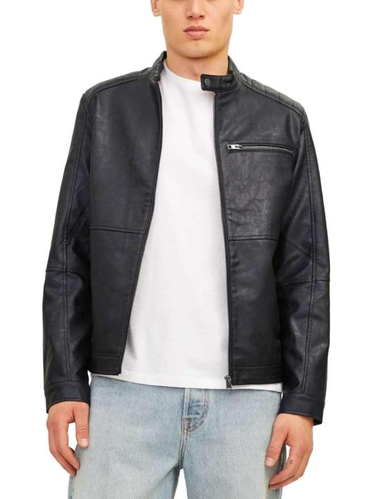 Jack & Jones Chaqueta de Hombre Jack&Jones Rocky Noos Negra de Polipiel - Alta Calidad