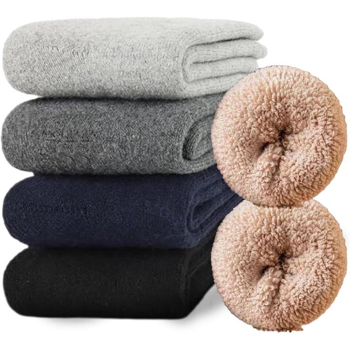 Prima de Materiales: estos calcetines invierno hombre están hechos de una mezcla de lana y poliéster de primera calidad. El material interior ultrasuave y esponjoso es agradable para la piel, no irritante, suave y cómodo, lo que permite que sus pies disfruten de un cuidado y comodidad naturales y lo mantenga siempre abrigado en climas fríos.