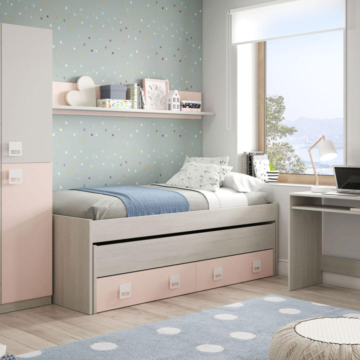 La cama doble Nube con estante es la solución perfecta para maximizar el espacio en tu dormitorio sin sacrificar estilo ni funcionalidad. Fabricada con melamina de buena calidad, esta cama ofrece durabilidad y elegancia en un diseño versátil y moderno. Con capacidad para 2 colchones, la cama doble Nube con estante es ideal para dormitorios juveniles o espacios compartidos. Puedes colocar un colchón de 90 x 190 cm en la parte superior y otro de 90 x 180 cm en la inferior, ofreciendo comodidad a cada ocupante. Además de la capacidad para 2 colchones, esta cama cuenta con 1 cajón de almacenaje extra integrado en la base, ofreciendo espacio adicional para guardar ropa de cama u otros objetos personales. El estante superior de almacenaje proporciona espacio adicional para exhibir decoraciones o almacenar libros y otros elementos esenciales. Robusta, resistente y estética, la cama doble Nube con estante combina funcionalidad y diseño en un solo mueble. Fácil de montar y mantener, esta cama es la opción perfecta para aquellos que buscan maximizar el espacio disponible en su dormitorio sin renunciar al estilo ni a la calidad.