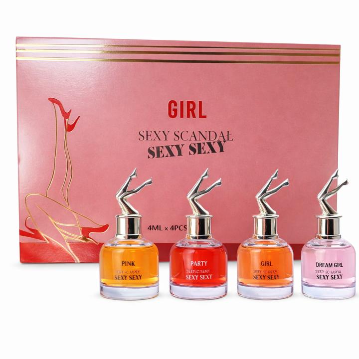 Sexy Scandal Girl Perfume Set es un estuche de fragancias femeninas en formato 4 × 30 ml, pensado como set de regalo o colección para mujer con aromas atractivos y de duración prolongada. Cada mini perfume ofrece una experiencia olfativa distinta que combina notas femeninas frescas y sensuales, diseñadas para acompañar diferentes momentos del día o eventos especiales. El set destaca por su diseño elegante y presentación en caja, convirtiéndolo en una opción versátil para quienes desean probar varias fragancias o regalar variedad sin comprometer calidad. Este set incluye cuatro perfumes de 30 ml cada uno, presentados en frascos individuales dentro de una caja estilizada, ideal para exhibir o guardar. La colección se describes como de olores agradables y bien diseñados, pensados tanto para uso personal como para regalos en ocasiones como cumpleaños, aniversarios o celebraciones. Cada fragancia en el set está formulada para ofrecer una estela duradera y atractiva, adecuada para uso diario, salidas sociales, citas o eventos especiales. El conjunto es una alternativa práctica para mujeres que desean explorar diferentes aromas sin comprar frascos grandes de un solo tipo, ofreciendo cuatro opciones de fragancias en un mismo paquete para adaptarse a distintos estilos personales y preferencias olfativas. Además, el diseño visual del estuche y la presentación de los frascos ayudan a resaltar su atractivo como regalo listo para entregar.
