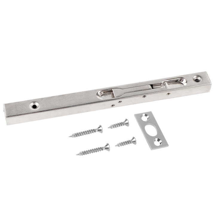 1、Hecho de acero inoxidable 304, de alta calidad, no se oxida, resistente y lo suficientemente confiable para el uso diario residencial 2、Fácil instalación, viene con tornillos a prueba de óxido y golpes de superficie para una conexión estable 3、Pestillo de puerta de diseño especial, fácil de usar y bueno para la seguridad del hogar 4、Los pestillos de perno empotrado: no se ven pernos ni partes mecánicas 5、Fácil de instalar, ideal para todo tipo de puertas de madera, puertas de acero inoxidable, etc.