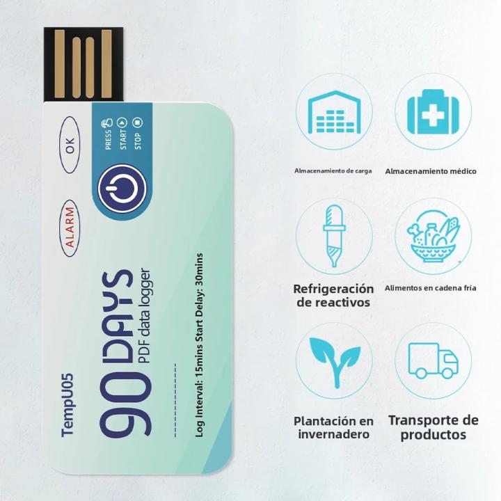 con una notable capacidad de grabación de 60 a 90 días, este registrador TempU05 garantiza un monitoreo continuo de la temperatura durante períodos prolongados.