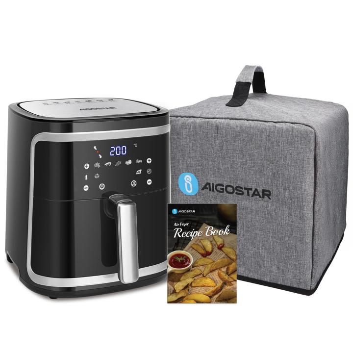 con Tapa Antipolvo; Cocinado por circulación de aire caliente 360º;Temporizador;Termostato;Revestimiento antiadherente;Recipiente extraíble;Capacidad de 7L;Panel de control táctil LED;Sistema de enfriamiento eficiente