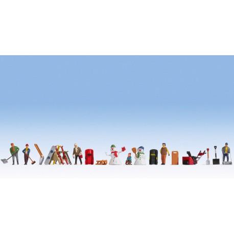 Perfecto para ambientar una maqueta en invierno. Incluye muñecos de nieve, niño en trineo, personas limpiando la nieve y otros muchos accesorios.